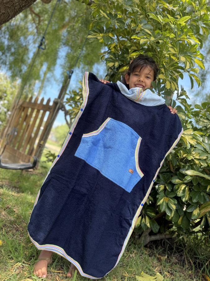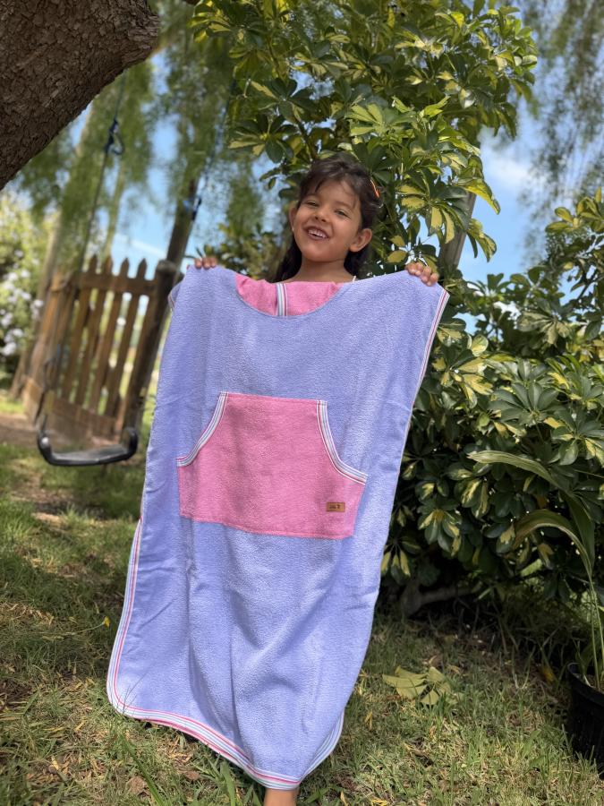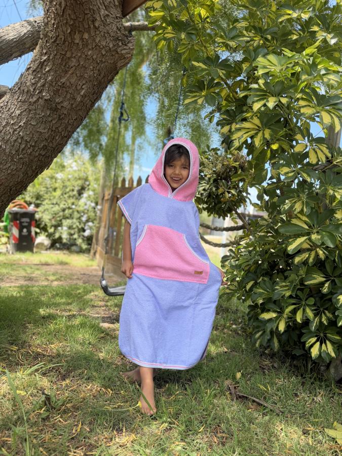 Apenas salen del agua, el poncho los envuelve, absorbe la humedad y les devuelve el calorcito al instante. Nada de niños temblando… ¡problema resuelto!