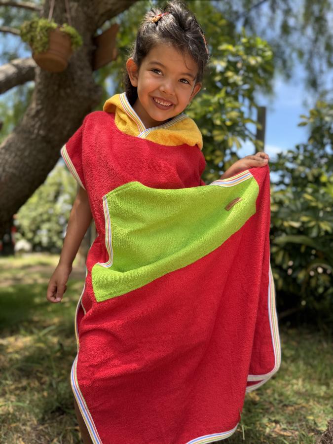 Apenas salen del agua, el poncho los envuelve, absorbe la humedad y les devuelve el calorcito al instante. Nada de niños temblando… ¡problema resuelto!