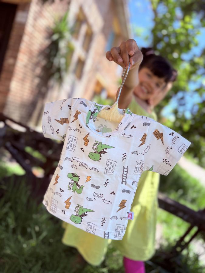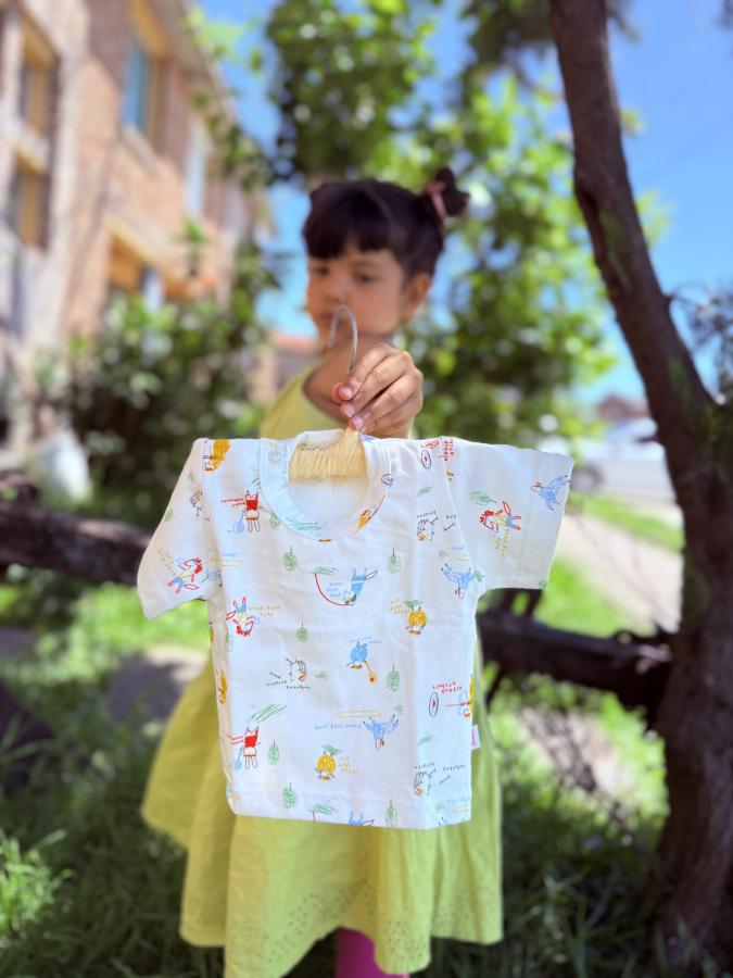 La remera para bebé de ay! Juana es el complemento ideal para el armario de tu niño. Fabricada con un tejido suave y ligero, esta remera asegura máxima comodidad durante los días calurosos. Disponibles en colores vibrantes y divertidos diseños, ¡tu bebé no solo estará fresco, sino también a la moda! Perfecta para combinar con shorts o pantalones cortos. ¡Haz sonreír a tu pequeño y a todos a su alrededor!