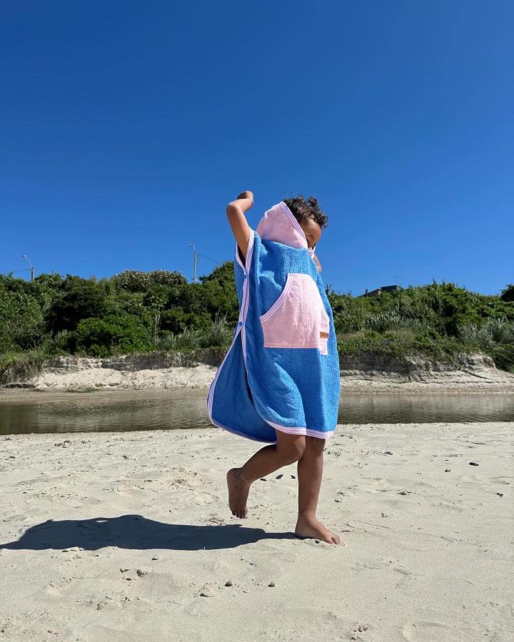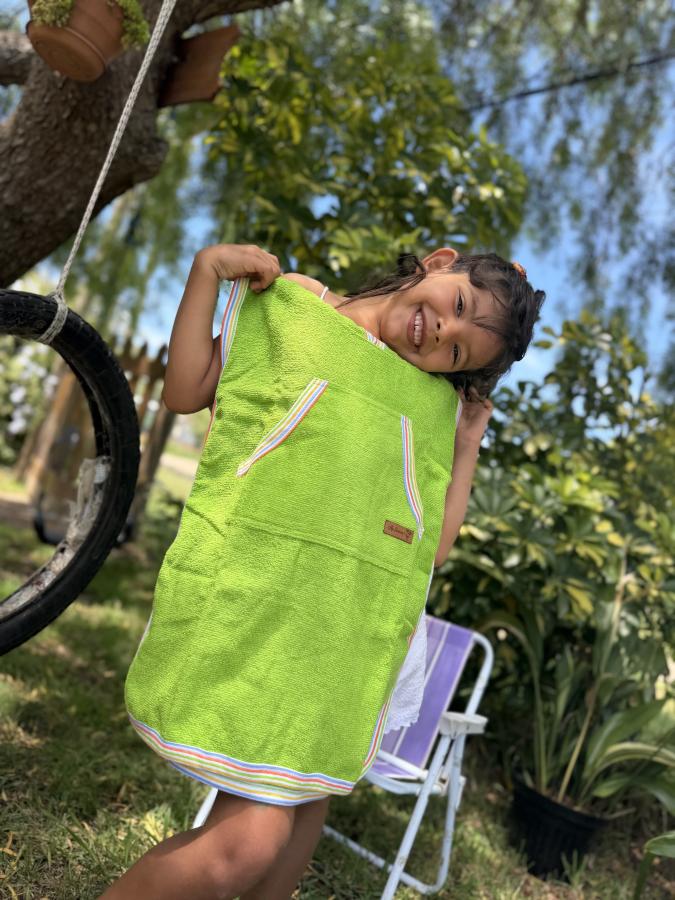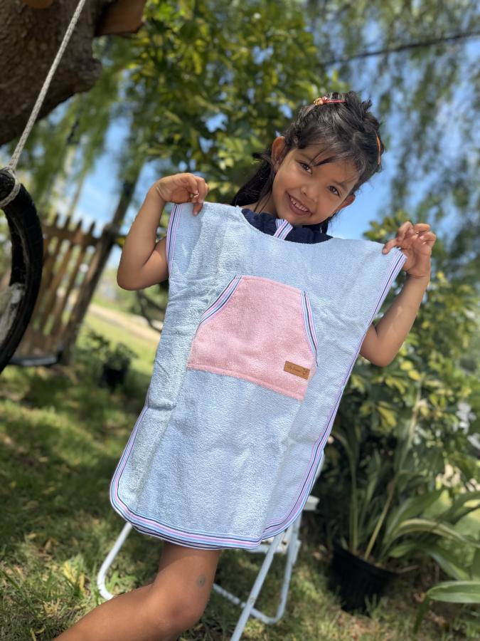 Apenas salen del agua, el poncho los envuelve, absorbe la humedad y les devuelve el calorcito al instante. Nada de niños temblando… ¡problema resuelto!